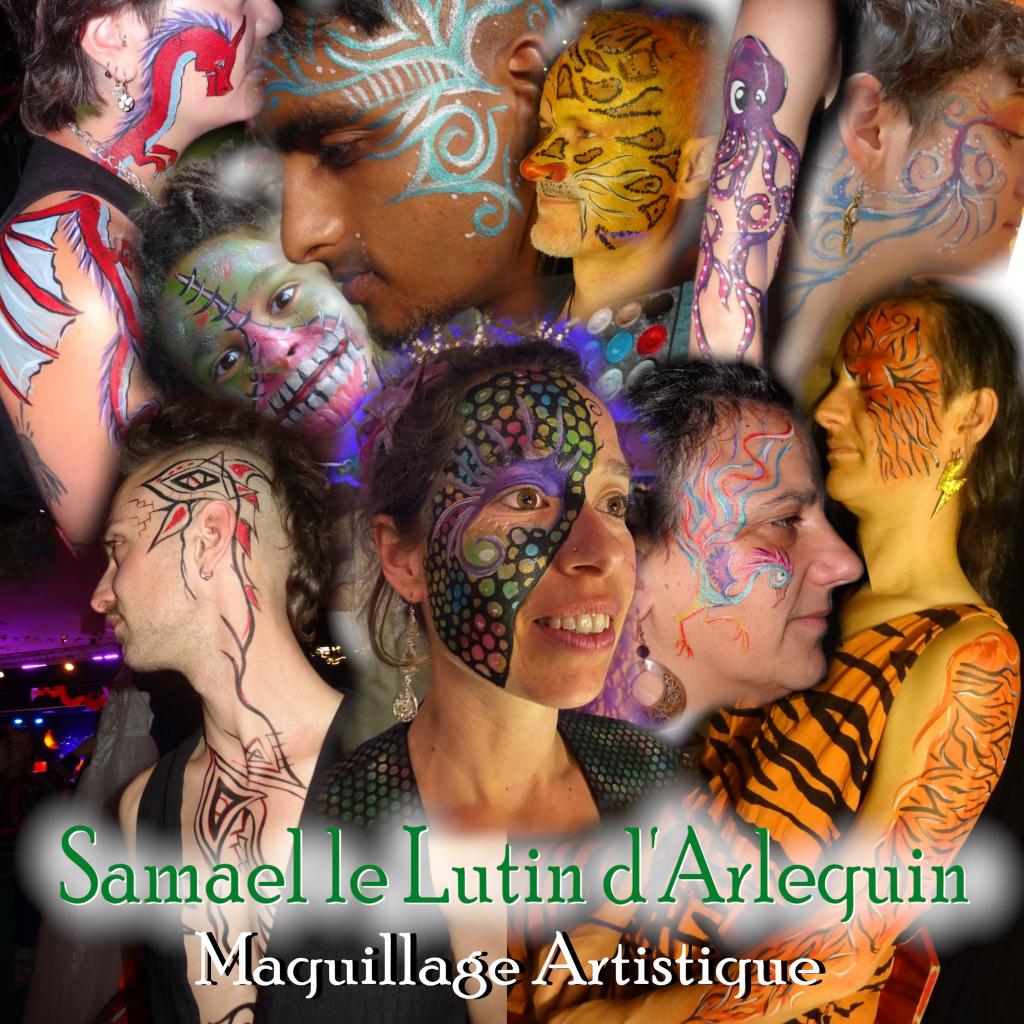 Il revient, Samael le Lutin d'Arlequin ! Avec pinceaux et une palettes de couleurs -et quelques paillettes- il est là pour rendre réel vos plus folles envies de maquillages et de peinture artistique, rêvez grand ou petit, flamboyant ou sobre, délicat ou explosif, il y en a pour tous les goûts (et tous les âges) ! Temps de maquillage, environ 5 à 10min (bref 1 à 2 danses). Réservation conseillé (sur place). Prix libre et Conscient. (tous les images ci-dessus sont des photos de bal trad où il a travaillé: le Bal de L'Espace, Réveillon des Passages, Bal du Noble Val, etc.).